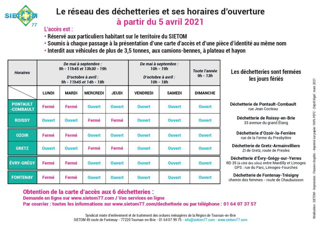 Pour plus de renseignements voici le lien https://sietom77.com/dechetterie/